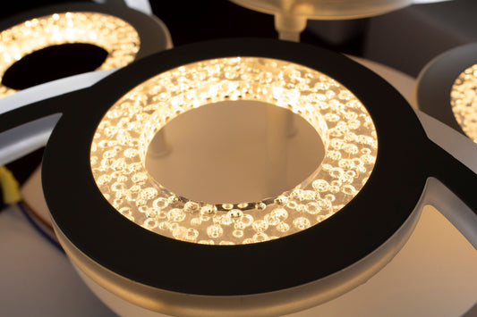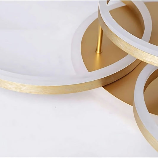 Lustra LED cu Telecomanda DARIO, 4 cercuri, 103W, Lumina Calda/Rece/Neutra, Dimabila, Auriu