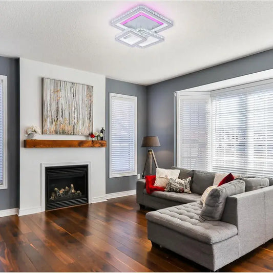 Doar 1 ramase in stocPreț obișnuit Preț redus 489,99 leiLustra LED cu telecomanda si cristal NOVA RHOMBA RGB 60W, 4 Patrate, lumina Rece/Calda/Neutra, Dimabila, Crom Lucios