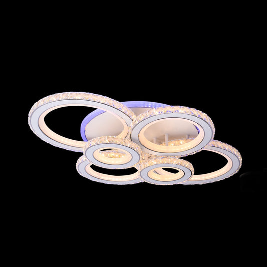 in stocPreț obișnuit Preț redus 379,99 leiLustra LED cu telecomanda si cristal NOVA ROTONDA RGB 152W, 6 Cercuri, lumina Rece/Calda/Neutra, Dimabila, Crom Lucios