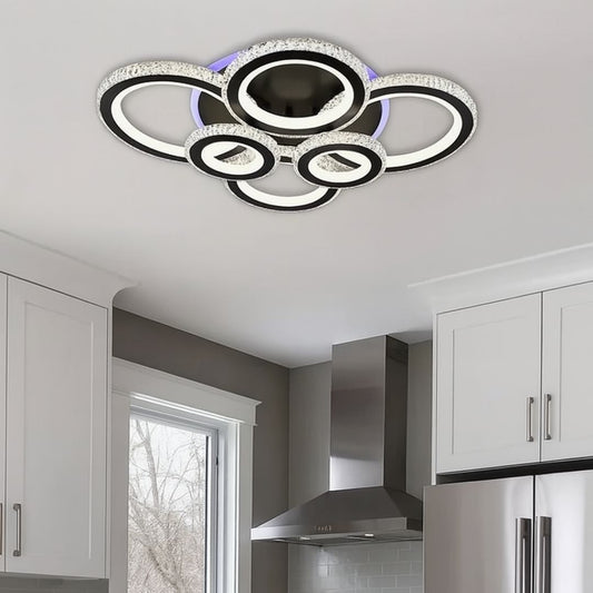 Doar 3 ramase in stocPreț obișnuit Preț redus 399,99 leiLustra LED cu telecomanda si cristal NOVA ROTONDA RGB 154W, 6 Cercuri, lumina Rece/Calda/Neutra, Dimabila, Negru