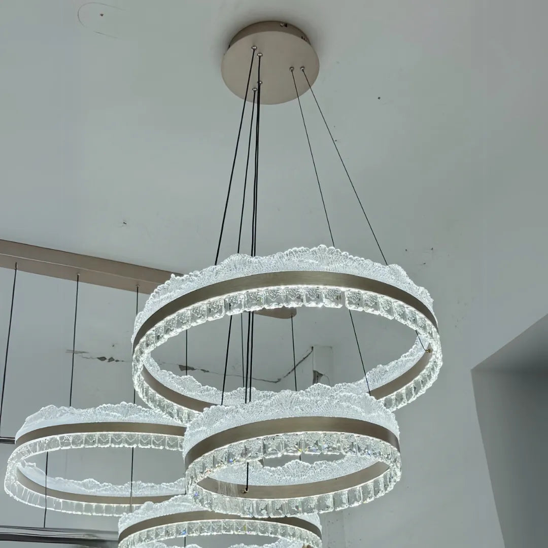Transforma-ti instant casa cu lustra NIVALIS. Designul sau modern, cu doua cercuri elegante cu finisaj metalic rafinat, este piesa de rezistenta pentru orice living sau dining.