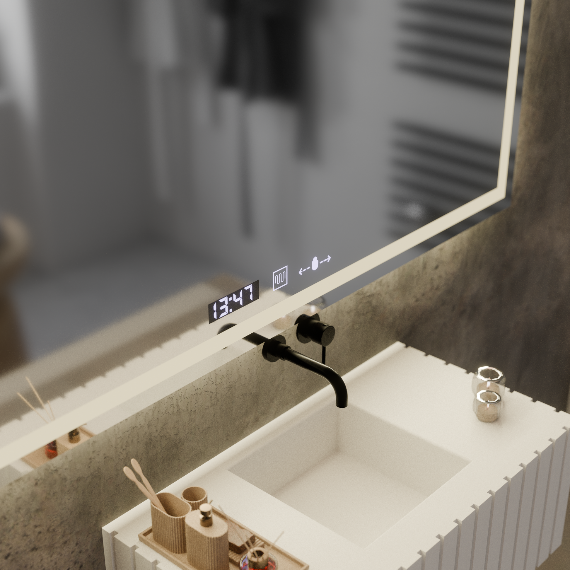 Tehnologia MotionGlow permite aprinderea luminii fără atingere, iar iluminarea LED dimabilă se adaptează nevoilor tale – fie că te pregătești pentru o zi agitată, fie că îți închei seara în liniște. Funcția de dezaburire păstrează suprafața clară în orice moment, în timp ce ceasul digital și termometrul ambiental completează experiența cu informații utile, direct în oglindă.