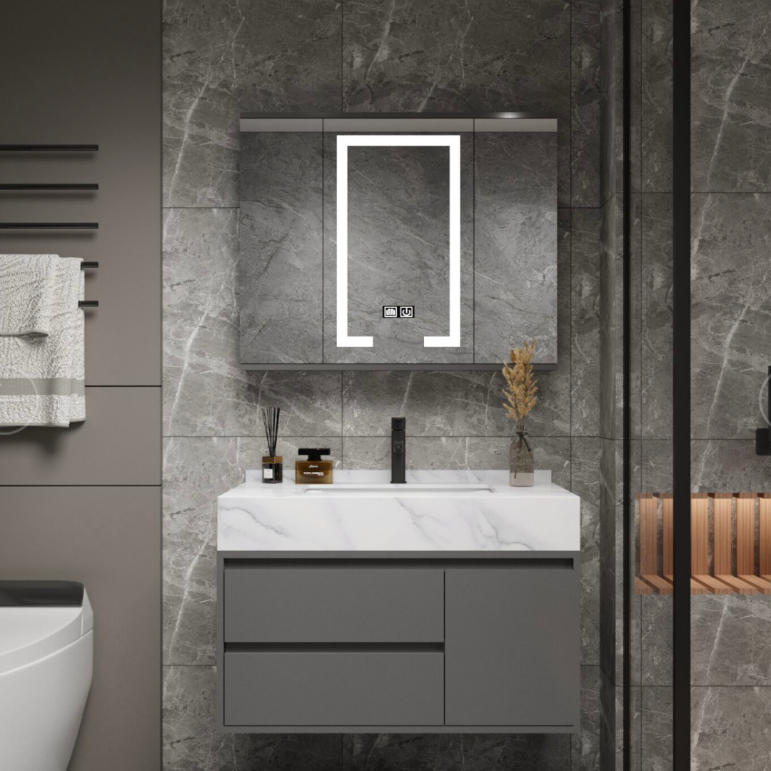 Set Mobilier pentru Baie SANTORINI, 80x50cm, 2 Piese, Gri si Alb